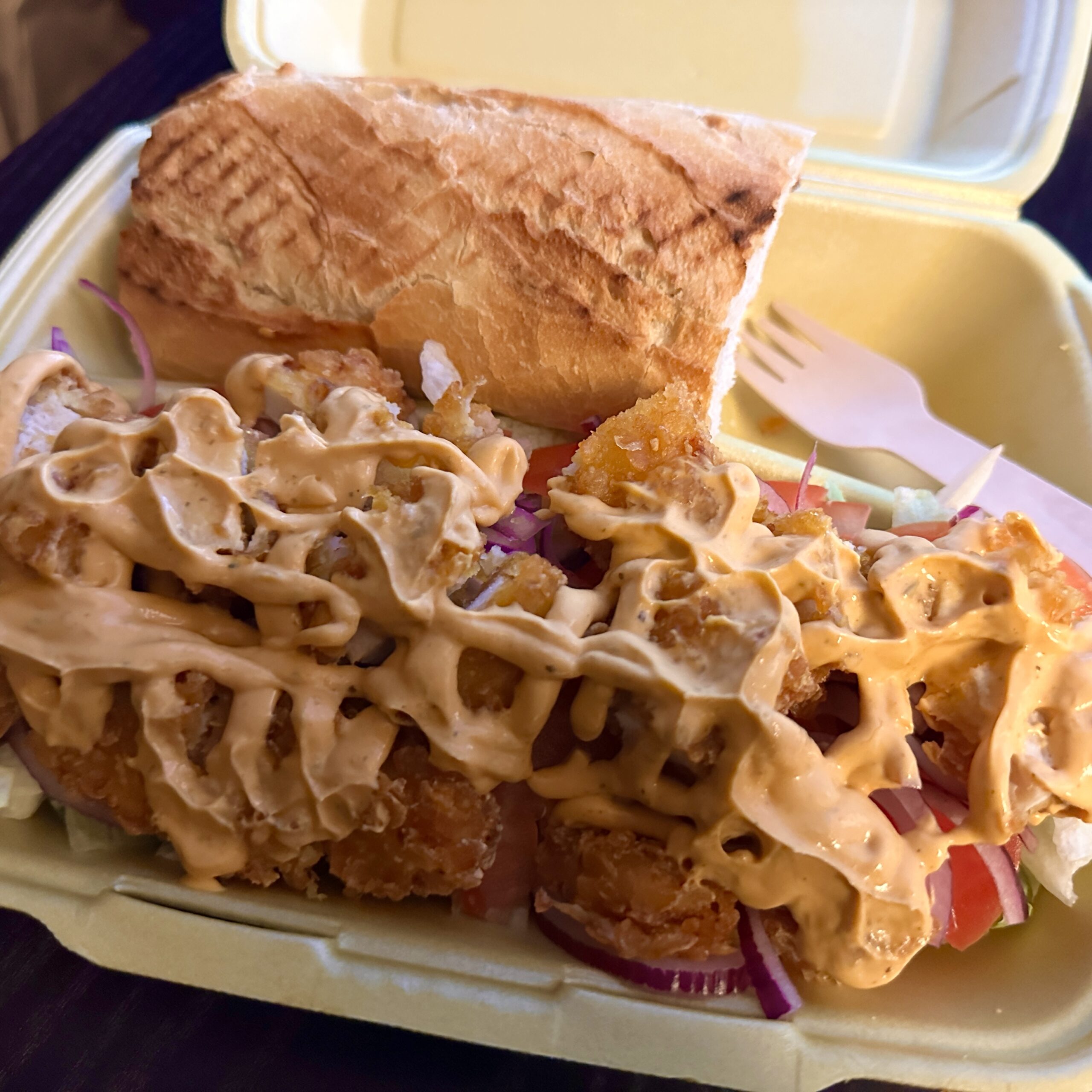 Besonders empfehlenswert sind die Tacos mit knusprigen Chicken Tenders. Die Hähnchenteile sind außen crispy und innen saftig. Diese werden dann mit Salat, Pommes und Soße in einem Wrap angerichtet.